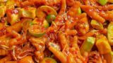 -喉肉を刻んで、魚醤、玉ねぎ、コショウで味を調える。細かくスライスした野菜と混ぜる。