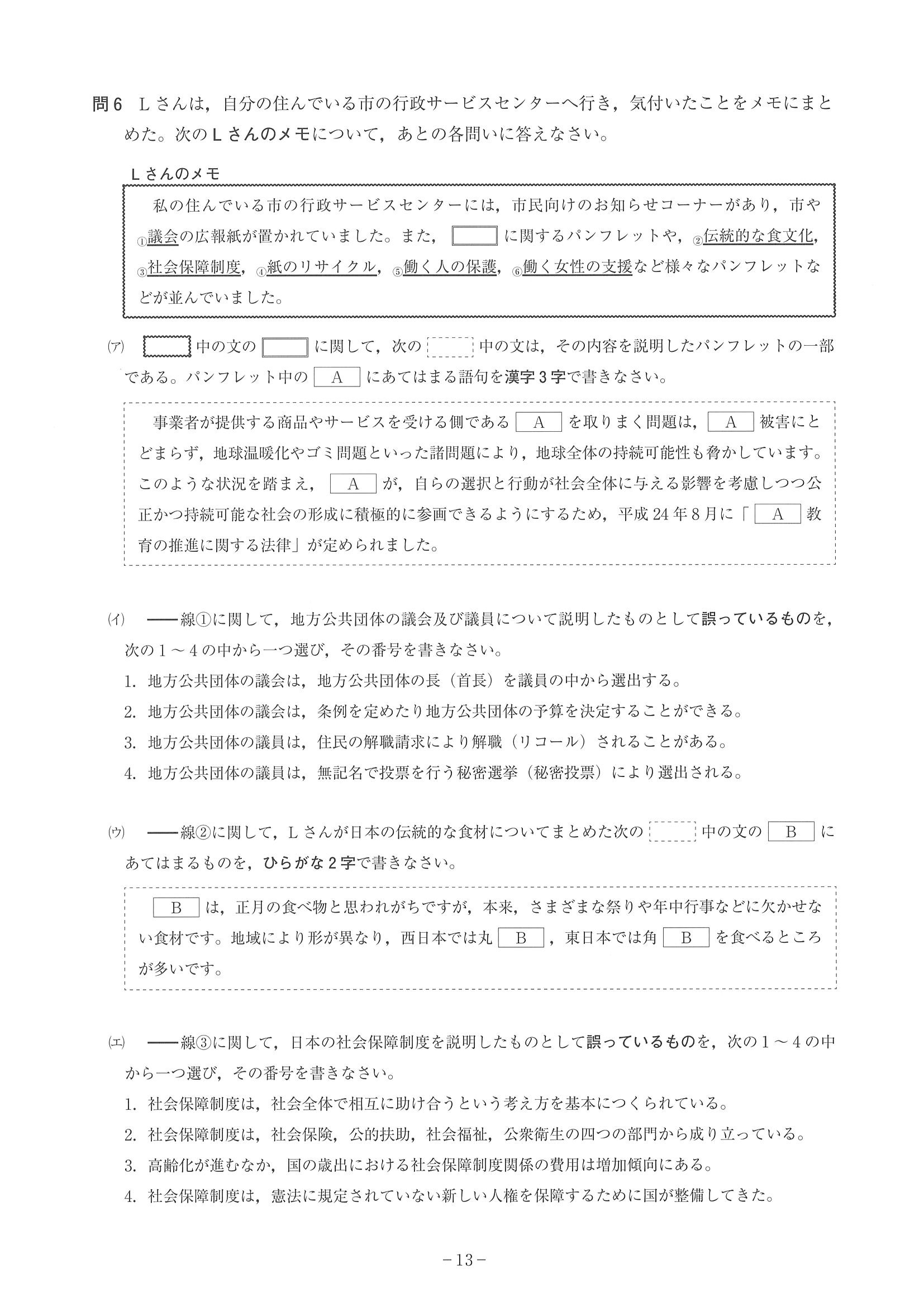2015年度 神奈川県公立高校入試(社会・問題)問6