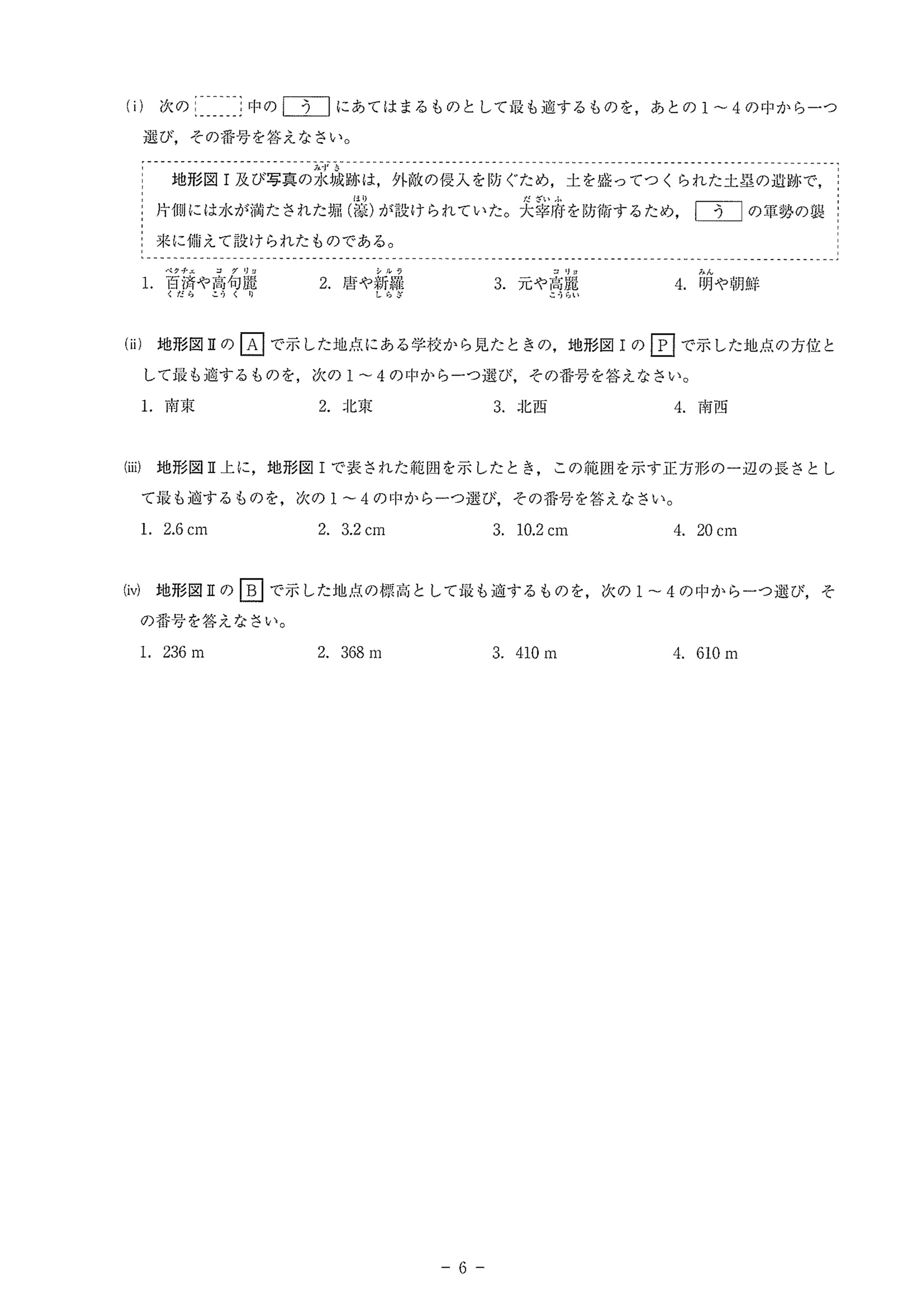 2019年度 神奈川県公立高校入試[標準問題 社会・問題]問2 高校入試過去問 X Facebook 2021.11.11 問2 (ア).3 定番の知識として 石炭は中国 鉄鉱石はオーストラリア (イ).2 再生可能の意味を考える。 地熱について理科でも習った内容なので確認するひと。 (ウ) 図は資料集で確認しておく。 (i).2 白村江の戦い後の国土防衛 (ii).4 (iii).2 (iv).3